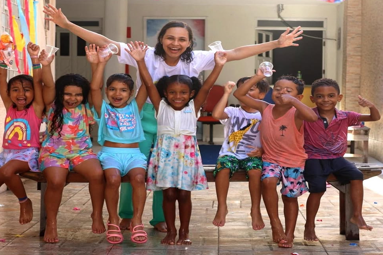 Aprendizagem por meio do brincar, com músicas, contação de histórias, artes e jogos motores.